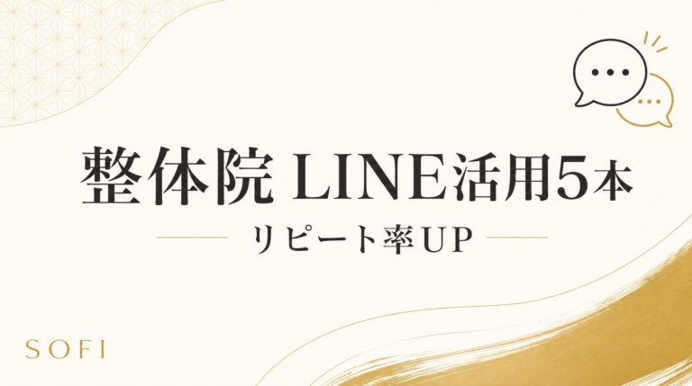 SOFI支援120院で実証された整体院LINE自動配信5本(来店御礼・体調確認・次回提案・30日リマインド・季節Tips)を実例数値付き解説。NG3パターンと30日プラン付き。
