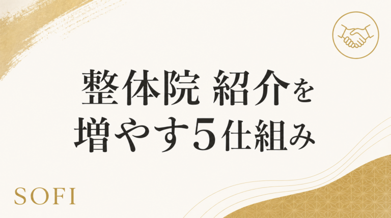 整体院の紹介率業界平均5%を18%に上げた実例。SOFI120院で実証された5つの仕組み(紹介依頼カード・特典明確化・依頼トーク統一・LINE紹介ボタン・年2回キャンペーン)。