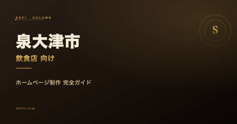 泉大津市(約7.4万人/約7.4万人)の飲食店・カフェがHP制作で公式予約・来店を実際に最大化した事例から、再現性ある5つの設計原則を解説。SOFI120店舗支援実績ベース。
